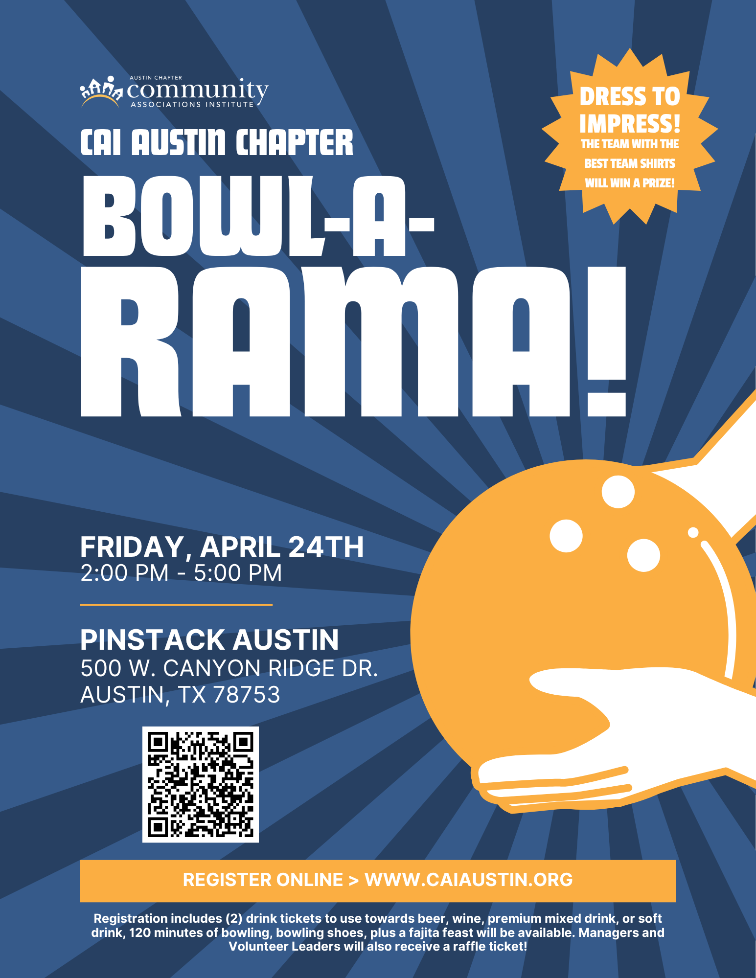 Includes (2) drink tickets to use towards beer, wine, premium mixed drink, or soft drink, 120 minutes of bowling, bowling shoes, plus a fajita feast will be available. Managers and Volunteer Leaders will also receive a raffle ticket!